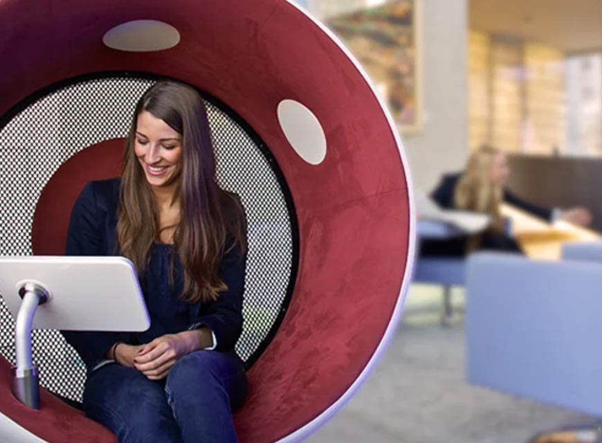 The sonic chair is also ideal for waiting areas and for presenting music, audio books, films and texts at trade fairs, exhibitions and museums.