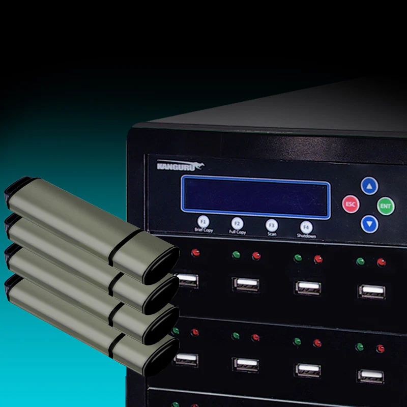 Clients have trusted Kanguru as a manufacturer of quality duplicators for over 25 years, so you know Kanguru is a brand name you can trust. Most Kanguru Duplicators are stand-alone units that do not need a computer to operate. With a flexible variety of fast duplicators to fit any budget or need, you’ll find duplication quick, convenient, and easy! Whether you need to copy Blu-ray discs, DVDs, CDs, Hard Drives, SSDs, USB, or NVMe, large jobs, or small, Kanguru has an option for you. If you require specific needs that you do not see here, please feel free to contact us and we would be happy to answer your questions.